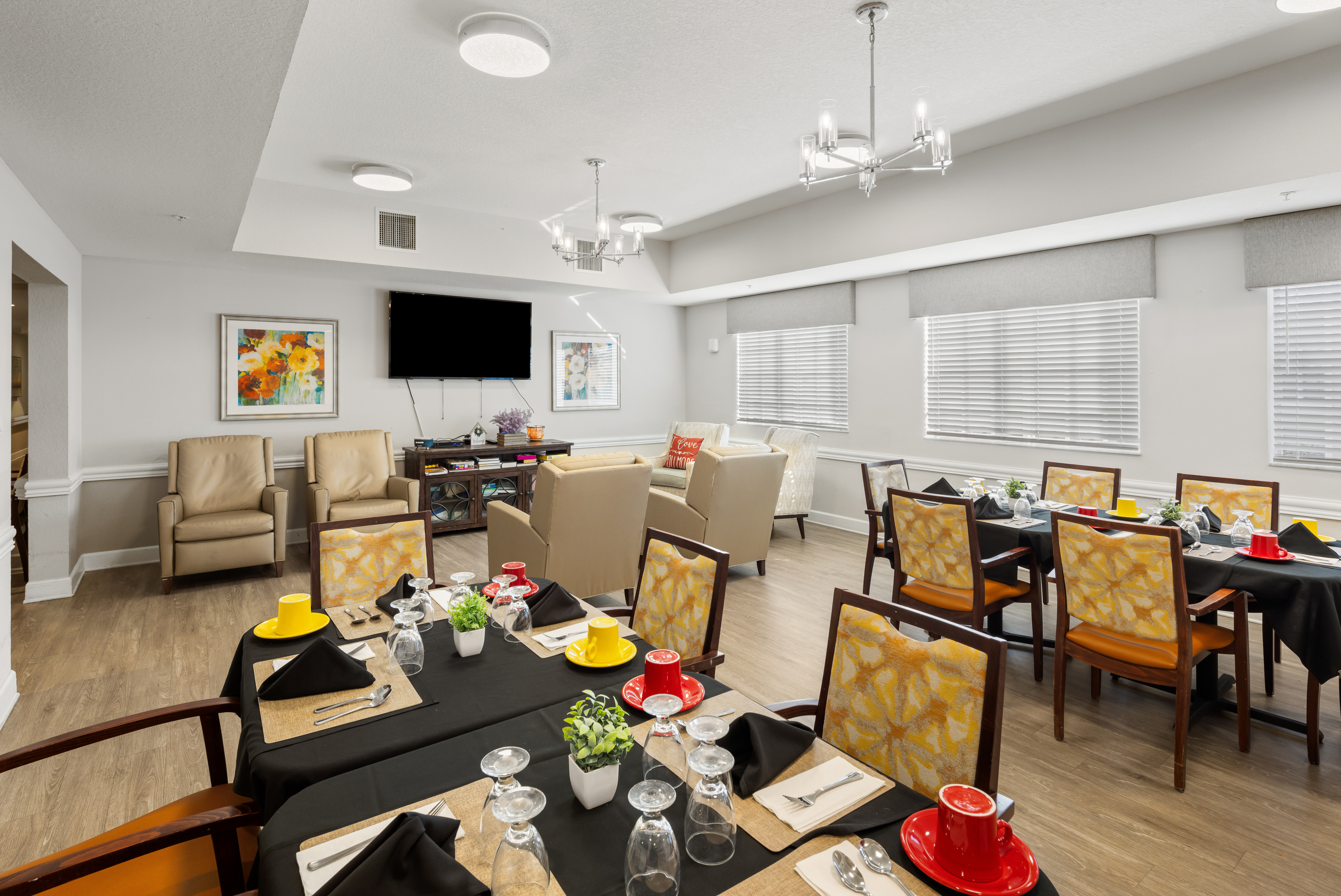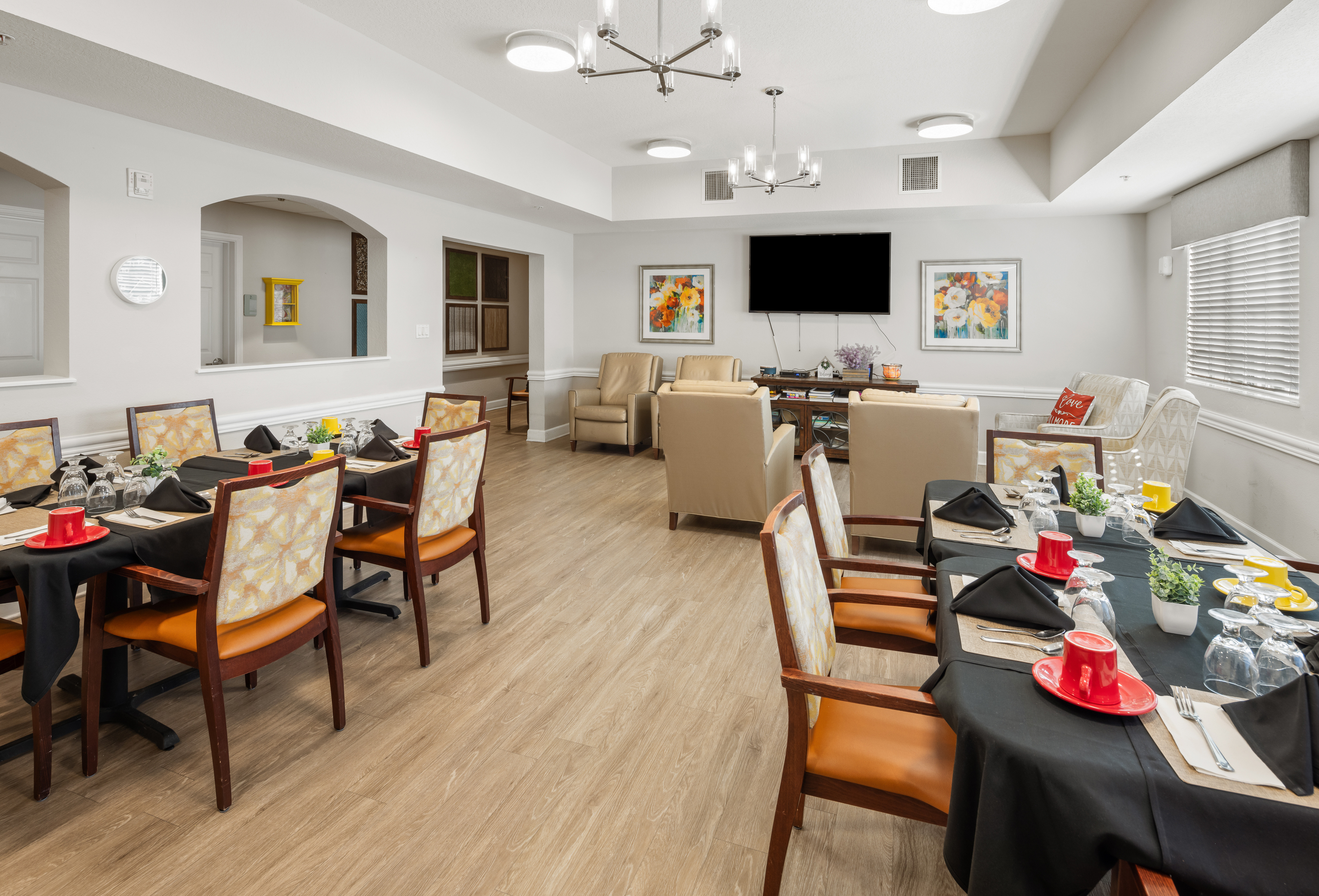 Our SHINE® Memory Care communities are designed to create a safe and uplifting space where residents can feel confident and independent. Our program incorporates soothing colors and music, defined spaces for living, dining, and entertainment, visual and tactile art, and aromatherapy to activate and engage the five senses to create meaningful experiences and enhance memory recall and emotional connection. These purposeful details help bring out residents’ smiles, spark their inner vitality, and foster a brighter, more fulfilling daily experience.