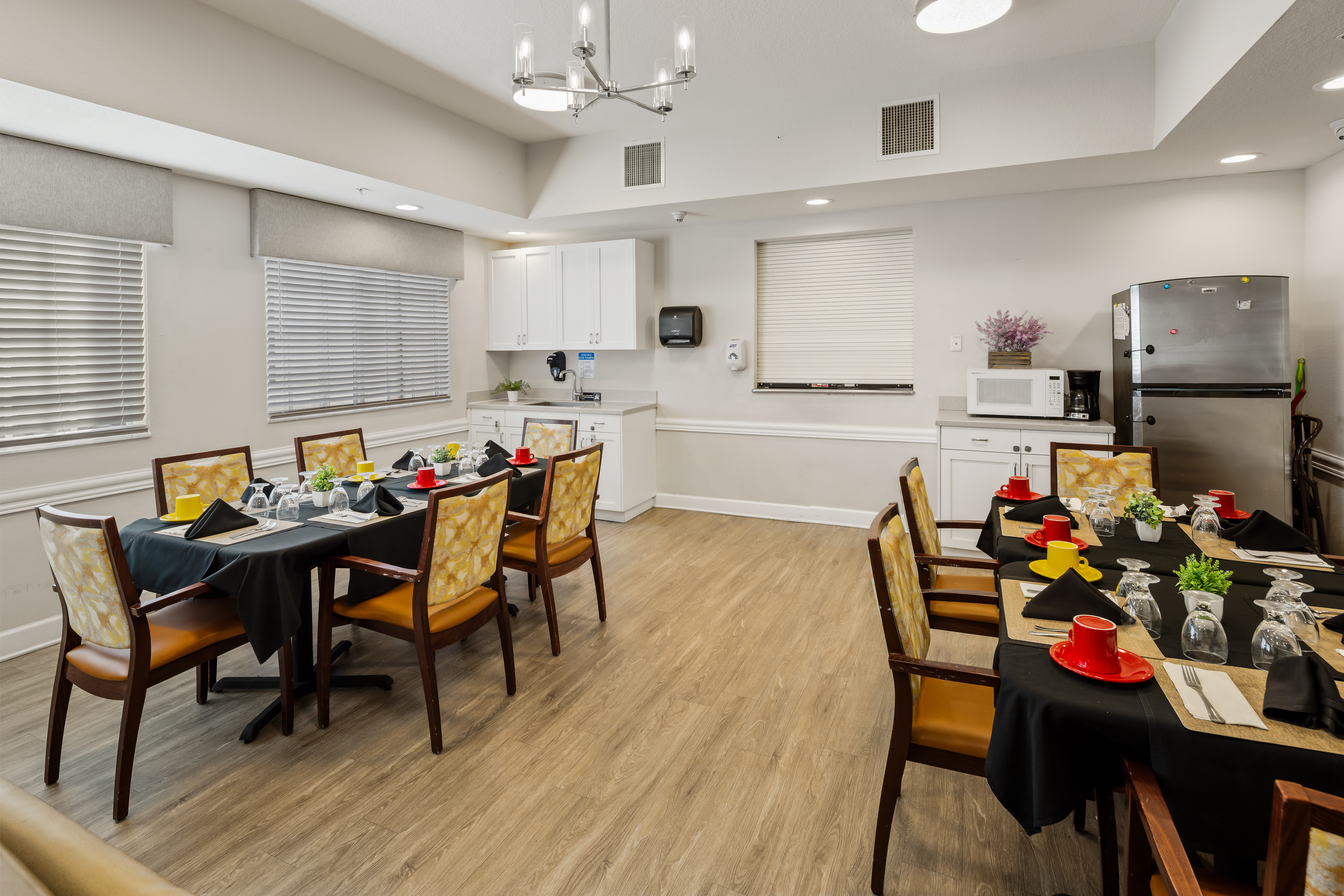 Our dining experiences are some of the most important parts of the day, offering more than just a meal, but a moment to connect and enjoy. Our chef-prepared, restaurant-style dining features fresh, seasonal ingredients and a choice of delicious and nutritious menu options to meet each resident’s preferences and abilities. Our compassionate team is trained to engage and support each resident to ensure a pleasant experience and apply tools as needed to assist, like our “dining on the run” program, adaptive utensils, modified diets, and dignified prompting and cues.